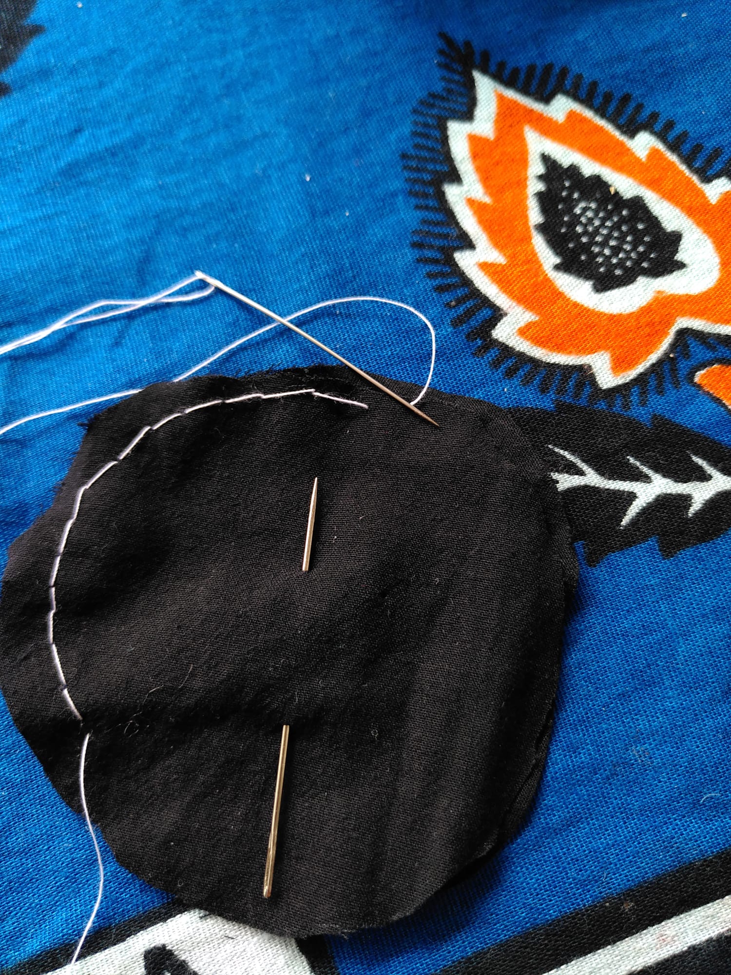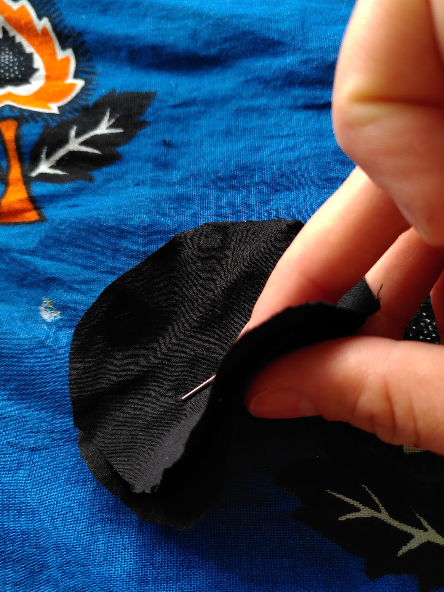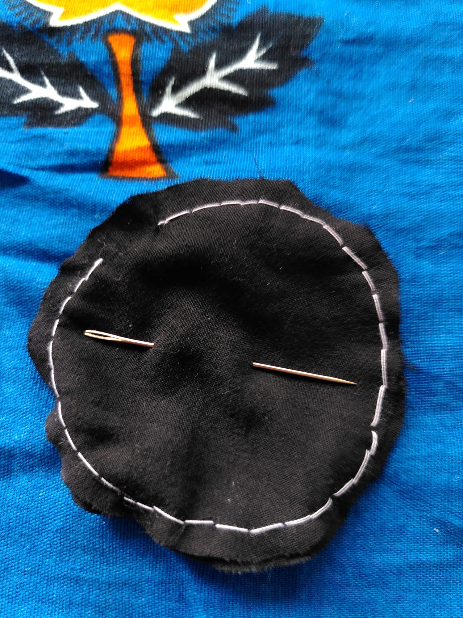 - Step 4: Nähe beide Stoffteile einmal rundherum am Rand entlang zummen.